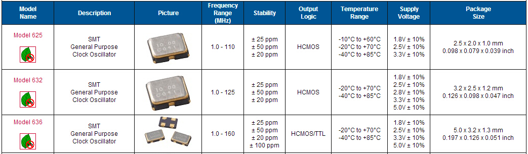 | 晶振規格參數 | 型號Model632 | |