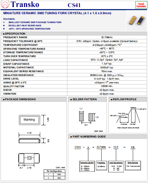 | Transko晶振 | 單位 | CS41晶振 | 石英晶振基本條件 |