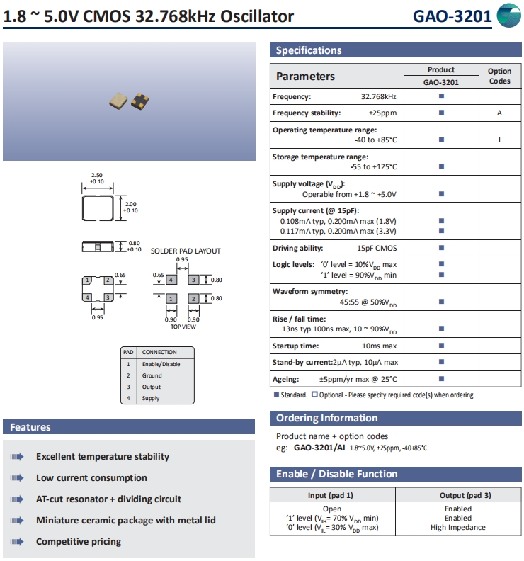 Golledge晶振,GAO-3201晶振,32.768K振蕩器.小型,薄型,質(zhì)地輕的表面貼片音叉型晶體振蕩器,手機晶體,產(chǎn)品體積小,特別適用于各種小巧的便攜式消費電子數(shù)碼產(chǎn)品,在移動通信領(lǐng)域廣泛的應(yīng)用,晶振產(chǎn)品本身可發(fā)揮優(yōu)良的電氣特性,滿足無鉛焊盤的高溫回流溫度曲線要求.