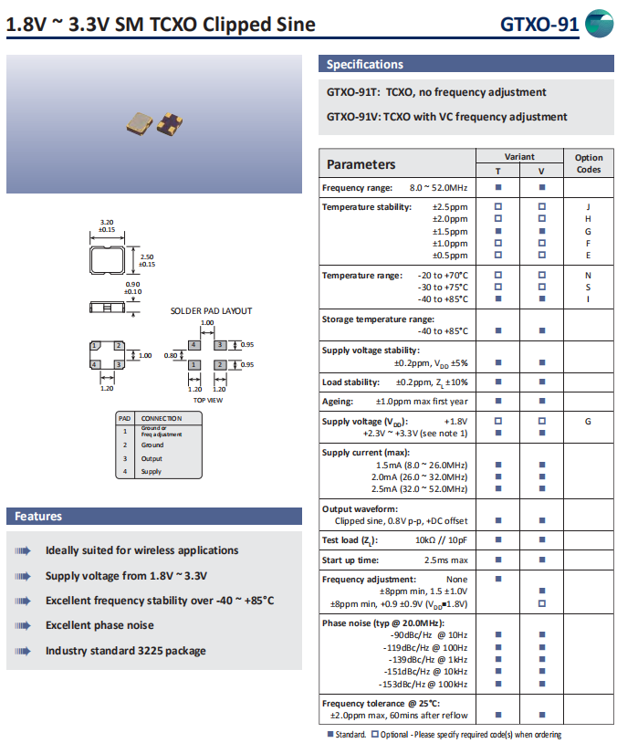 Golledge晶振,GTXO-91晶振,TCXO振蕩器.貼片式石英晶體振蕩器,低電壓?jiǎn)?dòng)功率,并且有多種電壓供選擇,比如有1.8V,2.5V,3.3V,3.8V,5V等,產(chǎn)品被廣泛應(yīng)用于,平板筆記本,衛(wèi)星系統(tǒng),光纖通道,千兆以太網(wǎng),串行ATA,串行連接SCSI,PCI-EXPress的SDH / SONET發(fā)射基站等領(lǐng)域.符合RoHS/無(wú)鉛..