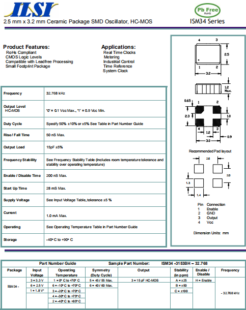 ILSI晶振,ISM34晶振,有源晶體振蕩器.有源晶振,是只晶體本身起振需要外部電壓供應,起振后可直接驅動CMOS 集成電路,產品本身已實現與薄型IC(TSSOP封裝,TVSOP封裝)同樣的1mm厚度,斷開時的消費電流是15 µA以下,編帶包裝方式可對應自動搭載及IR回流焊接(無鉛對應)產品有幾種電壓供選1.8V,2.5V,3V3.3V,5V,以應對不同IC產品需要.