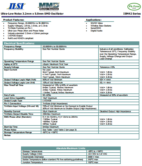ILSI晶振,ISM42晶振,耐高溫晶振.5032mm體積的石英晶體振蕩器,有源晶振,該產品可驅動2.5V的溫補晶振,壓控晶振,VC-TCXO晶體振蕩器產品,電源電壓的低電耗型,編帶包裝方式,可對應自動高速貼片機自動焊接,及IR回流焊接(無鉛對應),為無鉛產品,超小型,質地輕.產品被廣泛應用到集成電路,程控交換系統(tǒng),無線發(fā)射基站.