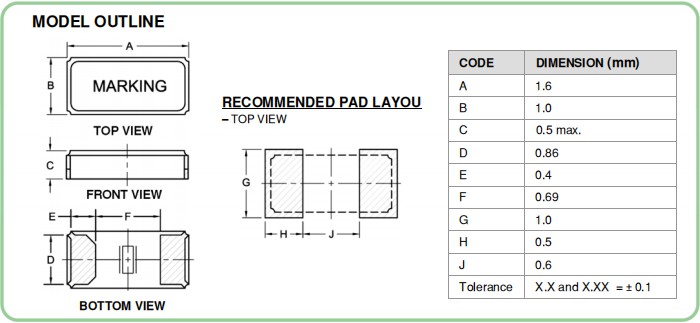 | 激勵功率 | DL | 1.0μW Max. | 推薦:100μW ~ 300μW |