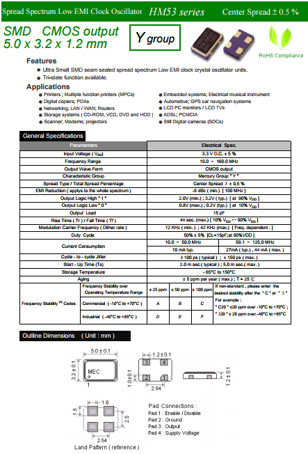 MERCURY晶振,Oscillator,HM53Y振蕩器.貼片有源石英晶振是指在普通無源晶體上增加了電壓,內(nèi)部集成了相應(yīng)IC與電容電阻,需要在凈化萬級車間生產(chǎn),并且在密封機器設(shè)備中焊接加蓋,內(nèi)部封裝模式是指在真空封裝區(qū)域內(nèi)進行封裝.1.防止外界氣體進入組件體內(nèi)受到污染和增加應(yīng)力的產(chǎn)生;2.使組件在真空下電阻減小;3.氣密性高.此技術(shù)為研發(fā)及生產(chǎn)超小型,超薄型石英晶體元器必須攻克的關(guān)鍵技術(shù)之一.