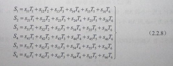 式中S1、S2、S3分別表示沿x、y、z方向的正應(yīng)變;S4、S5、S6分別表示沿x、y、z平面的切應(yīng)變。