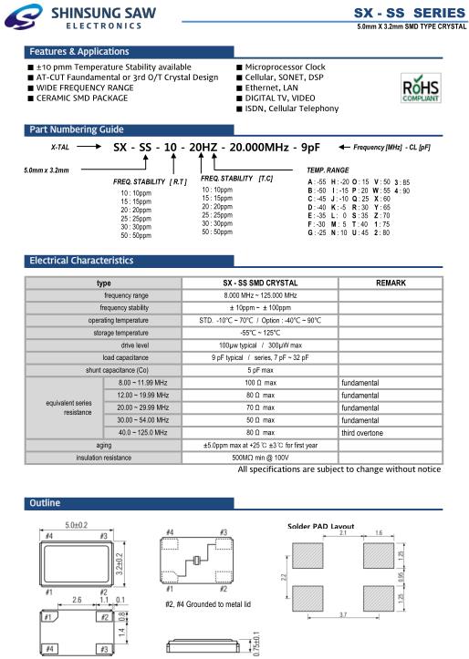 進口晶體振蕩器的不正確安裝會導致故障以及崩潰,因此安裝時,請檢查安裝方向是否正確.SHINSUNG晶振,SX-SS無源晶體,SX-SS-10-20HZ-16.000MHz-6pF晶振.