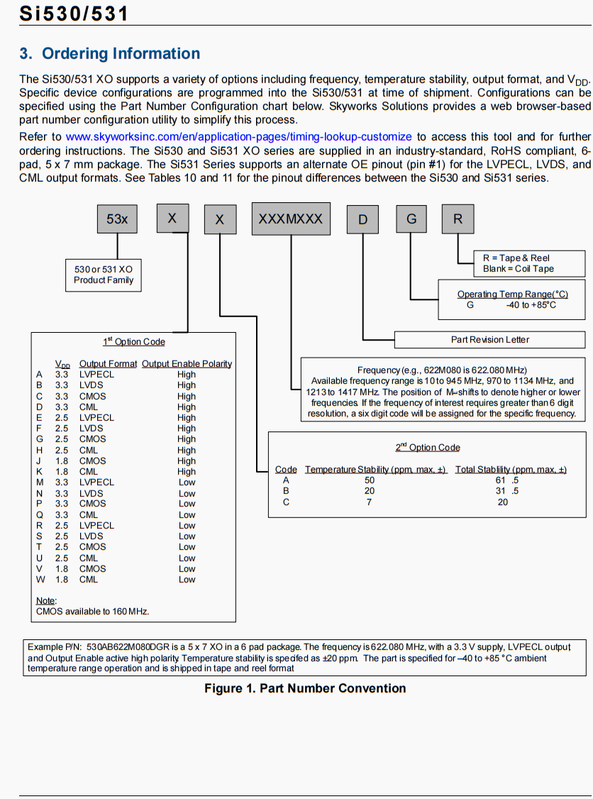 | 536AC125M000DG | Skyworks晶振 | Si536 | XO | 125 MHz | LVPECL | 3.3V | ±7ppm |