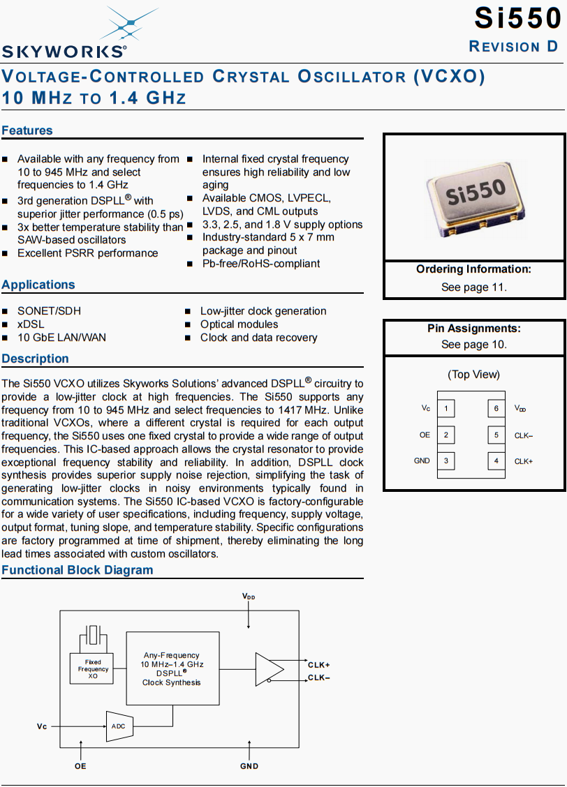 | 536BB125M000DG | Skyworks晶振 | Si536 | XO | 125 MHz | LVDS | 3.3V | ±20ppm |