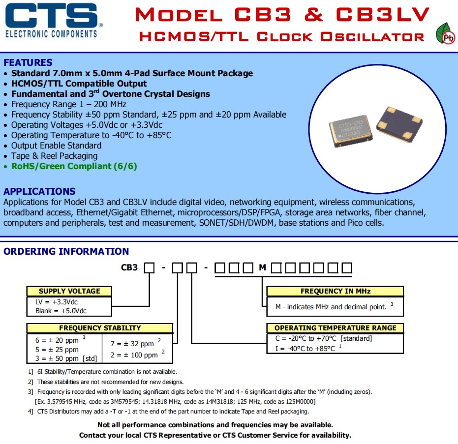 | CB3LV-3C-50M0000 | CTS晶振 | CB3LV | 50MHz | ±50ppm | 4-SMD, No Lead |