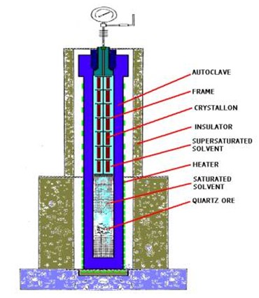 石英晶體的生長設(shè)備是高壓釜,如下圖: