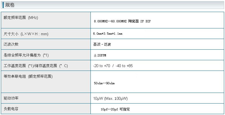 晶振規格