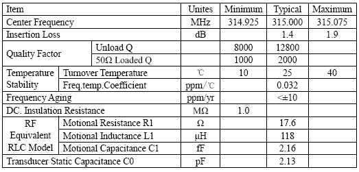 聲表面諧振器,TO39-R315M,濾波器