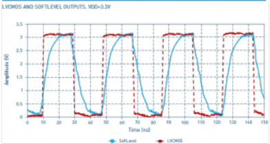 圖2:正常LVCMOS方波信號(hào)(紅線)與軟電平LVCMOS輸出信號(hào)(藍(lán)線)的側(cè)面輪廓