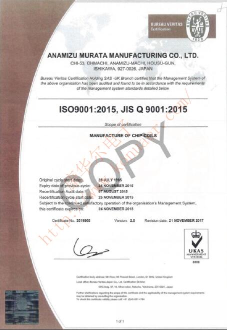 大家對村田制作所的石英晶體系列應該不陌生,是村田晶振公司除了陶瓷之外,最受到歡迎的頻率組件產品,而且所有晶體產品均符合ISO9001國際品質認證.村田石英晶體的尺寸普通較小,大多數都是2520mm,2016mm等,現在已經推出了1612mm超小體積的諧振器產品.以下是村田晶振工廠的ISO9001:2015品質認證證書. XRCED37M400FXQ52R0石英晶體XRCGB24M576F3N00R0村田石英晶體XRCGB24M000F3M01R0晶體諧振器XRCGB24M576F3M00R0晶振XRCFD26M000FYQ01R0石英晶振XRCGB24M576FAN00R0日產晶振XRCGB24M000F3M02R0貼片石英晶振XRCGB24M576F3M01R0壓電石英晶體XRCGB24M000F0G00R0貼片晶振XRCGB25M000F0G00R0工業級晶振XRCGB24M000F3M13R0晶體晶振XRCGB24M576F3M02R0石英晶振XRCGB24M000F0L00R0石英晶體諧振器XRCGB25M000F0L00R0電腦晶振XRCGB24M000F3M19R0石英水晶振子XRCGB25M000F2P02R0石英晶體XRCGB24M000F0Z00R0無源晶振XRCGB25M000F0Z00R0藍牙晶振XRCGB24M000F3N00R0貼片諧振器XRCGB25M000F3A00R0村田晶振XRCGB24M000F1H00R0進口晶振XRCGB25M000F1H00R0汽車電子晶振XRCGB24M000FAN00R0石英晶體XRCGB25M000F3G00R0貼片晶振XRCGB24M000F1H01R0晶振XRCGB25M000F1H01R0晶體諧振器XRCGB24M000FBP12R0村田晶振XRCGB25M000F3M00R0石英晶體諧振器XRCGB24M000F1H02R0壓電石英晶體XRCGB25M000F1H02R0貼片石英晶振XRCGB25M000F3M18R0壓電石英晶體XRCGB25M000F3M01R0無源晶振XRCGB24M000F1H03R0石英晶振XRCGB25M000F1H03R0晶體晶振XRCGB25M000F3N00R0石英晶振XRCGB25M000F3M02R0進口晶振XRCGB24M000F2P00R0石英晶體諧振器XRCGB25M000F2P00R0石英水晶振子XRCGB25M000FAN00R0村田石英晶體XRCGB25M000F3M04R0晶振XRCGB24M000F2P01R0日產晶振XRCGB25M000F2P01R0貼片諧振器XRCGB24M000F3G00R0藍牙晶振XRCGB24M576F0Z00R0無源晶振XRCGB24M000F2P02R0工業級晶振XRCGB24M576F0G00R0貼片晶振XRCGB24M000F3M00R0汽車電子晶振XRCGB24M576F3G00R0進口晶振XRCGB24M000F3A00R0電腦晶振XRCGB24M576F0L00R0石英晶體諧振器