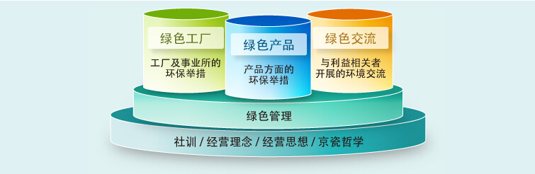 京瓷集團(tuán)以全球環(huán)境管理體系“綠色管理”為基礎(chǔ),在“綠色產(chǎn)品”、“綠色工廠”、“綠色交流”這三大領(lǐng)域,追求環(huán)保和經(jīng)濟(jì)雙贏.同時(shí),將共存(LIVING TOGETHER)作為所有企業(yè)活動(dòng)的基礎(chǔ),開展可持續(xù)發(fā)展的“環(huán)境經(jīng)營”.