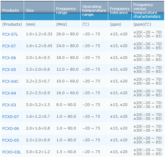 | 晶振參數(shù)表 | 石英晶體FCX0-07 | |
