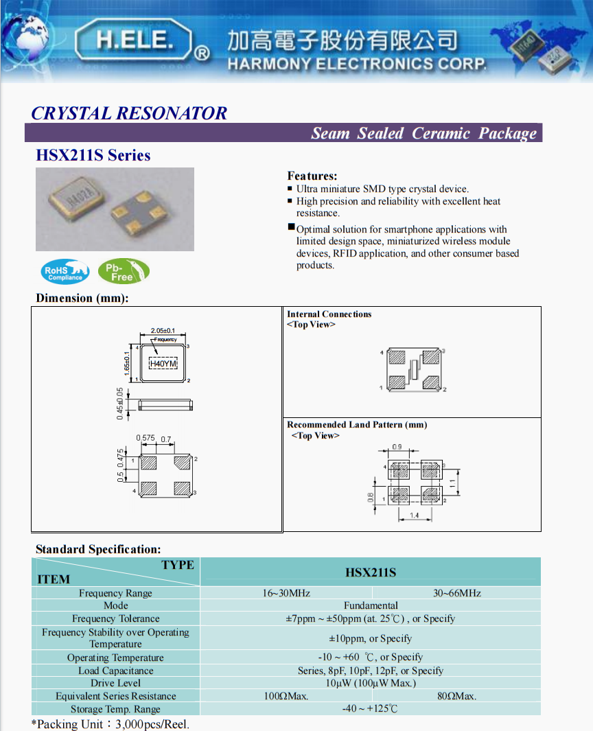 X2C032000BC1H-HS晶振,智能穿戴設備晶振,臺灣加高環保晶振,特點:超小型貼片型晶體器件。精度高,可靠性好,耐熱性好。適用于設計空間有限的智能手機應用程序、初始化無線模塊設備、RFID應用程序和其他基于消費者的產品.臺灣加高晶振公司,HELE晶振,小尺寸晶振,2016晶振,超小型晶振,低損耗晶振,高品質晶振,高精度晶振,環保無鉛晶振,電腦主板晶振,智能穿戴設備晶振,6G通訊終端晶振,程控交換機晶振,無人機晶振。