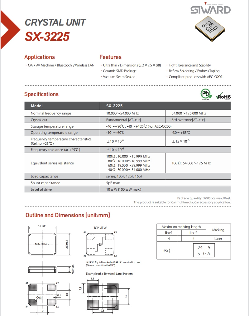 | XTL571150-G47-219 | Siward晶振 | SX-3225 | 25 MHz | ±10ppm | 18pF | -40°C ~ 85°C |