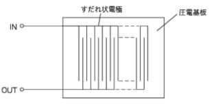 圖一 SAW濾波器的基本結構(橫向型) 圖二 叉指式換能器的基本結構(橫向型)